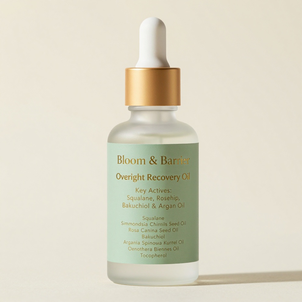 Bloom & Barrier Overnight Recovery Oil is a luxurious, fast-absorbing facial oil that works while you sleep to deeply nourish, repair, and restore skin’s natural radiance. Blended with premium botanical oils and gentle bakuchiol, it helps improve skin texture, boost hydration, and deliver a healthy, glowing complexion by morning. Non-comedogenic and suitable for most skin types, this oil seals in moisture and supports the skin barrier overnight without feeling heavy or greasy.